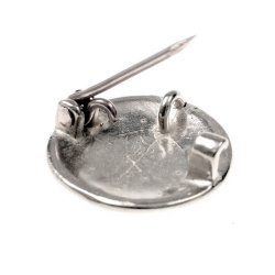 Auf der Rückseite ist die keltische Scheibenfibel mit einer soliden Nadel versehen, mit der die Brosche am Gewand befestigt wird, vorzugsweise zum Verschließen des Hemdausschnitts.
