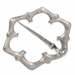 Replik einer mittelalterlichen Fürspange in Vierpass-Form nach einem originalen Fund aus England. Bronze, versilbert oder 925 Silber. 3 x 3 cm.