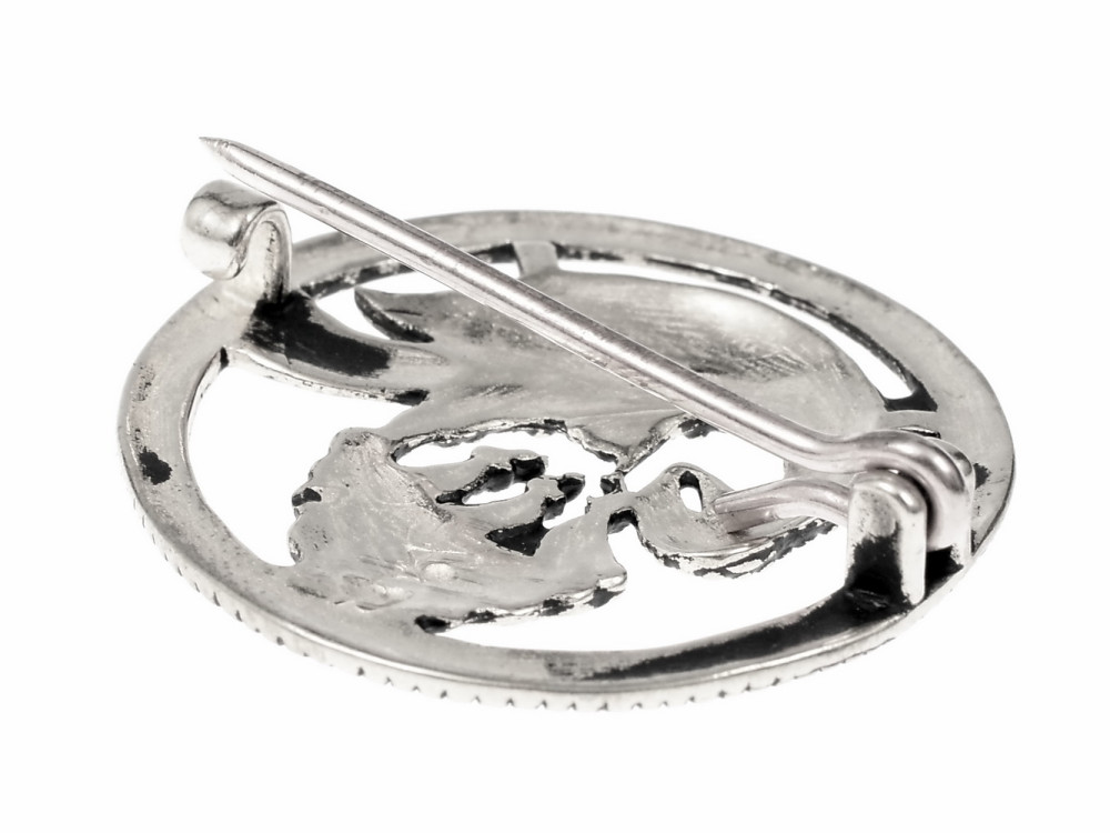 Ihr könnt diese mittelalterliche Fibel aus hochwertiger Bronze und in echt versilbert kaufen. Auf der Rückseite befindet sich eine solide Nadel, die auch für kräftigere Stoffe geeignet ist und sich deshalb bestens für die mittelalterliche Gewandung verwenden lässt.