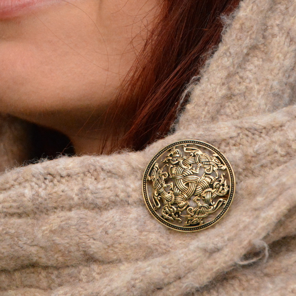 Scheibenfibel-Replik. Wikingerschmuck im Borrestil . nach einem finnischen Fund aus dem 10. Jh. kaufen. Bronze, versilbert oder 925 Silber. 4 cm.