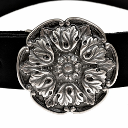 Die Schließe an diesem Gürtel trägt ein für die Renaissance typisches florales Ornament nach historischen Vorbildern.