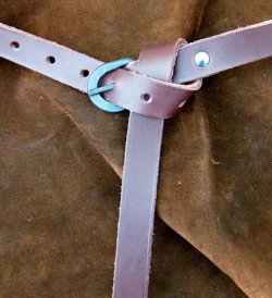 Der Gürtelriemen hat die im Mittelalter übliche Länge und kann geknotet getragen werden - so weist das überstehende Gürtel-Ende dekorativ zu Boden. Ideal für die Gewandung im Larp und Mittelalter-Reenactment.