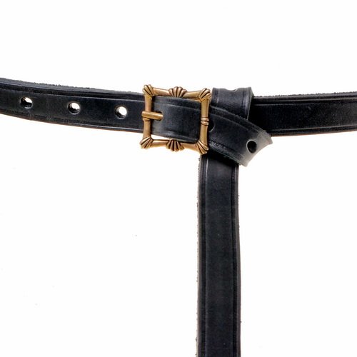 Spätmittelalter-Gürtel in 2 cm Breite aus Leder mit Doppel-Schließe aus Bronze für die Gewandung im Mittelalter-Reenactment. 160 oder 175 cm.
