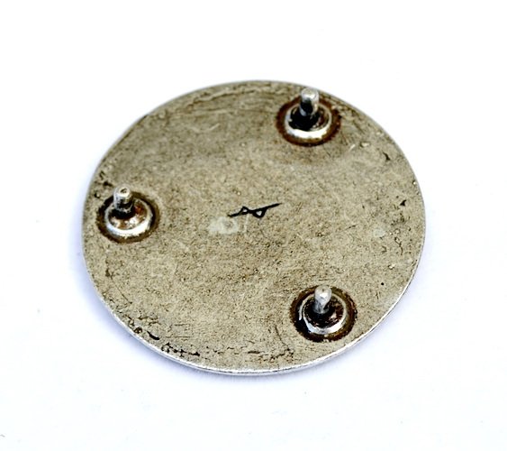 Die Zierniete zeigt vier von verschlungenen Knotenmotiven getrennte Triskelen, von denen eine das Zentrum der Zierniete dominiert