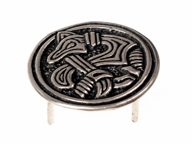 Der Wikinger-Beschlag hat genau wie das historische Vorbild einen Durchmesser von 2,5 cm und wird aus hochwertiger Bronze und auch in echt versilbert gefertigt.