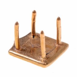 Befestigung: Auf der Rückseite der orientalischen Zierniete befinden sich vier Bronze-Stifte. Zur Befestigung werden diese einfach durch entsprechende Löcher im Leder geführt. Mit einer Zange biegt man am besten die Spitze jedes Stifts ein wenig nach Innen. Klopft man dann mit einem Hammer die Stifte flach, so versenkt sich die Spitze dabei im Leder und die Wikinger-Zierniete wird stabil und plan auf dem Gürtel befestigt.