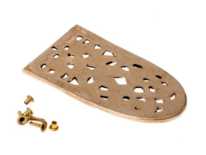 Das Riemenende von Gokstad ist detailgetreu nach der historischen Vorlage aus hochwertiger Bronze gefertigt und auch in echt versilbert erhältlich. Drei Nieten zur Befestigung liegen bei.