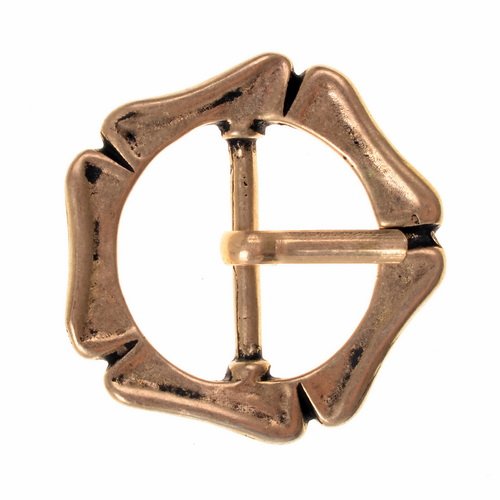 Diese authentische Replik einer bronzenen Mittelalter-Schnalle in Fünfpass-Form wurde detailgetreu nach einem Original aus dem Spätmittelalter gefertigt.
