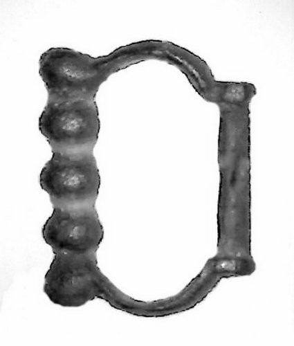 Abmessungen spätmittelalterliche Schnalle: 3,4 x 3,4 cm.