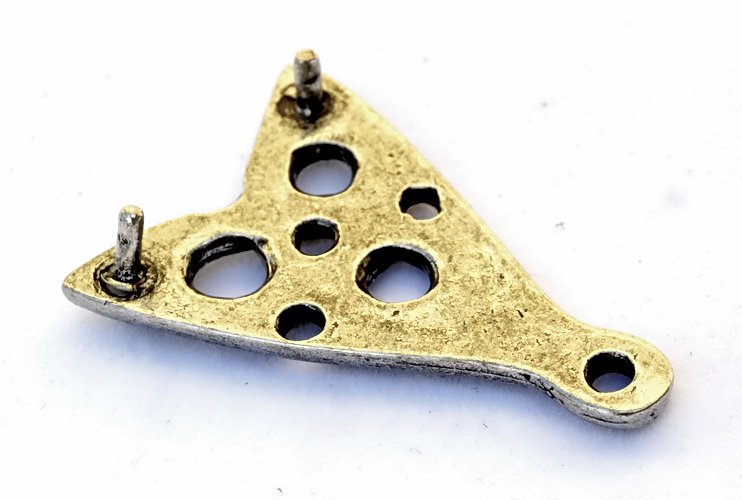 Auf der Rückseite der Riemenzunge befinden sich zwei 5 mm lange Stifte, auf die zur Befestigung einfach kleine, mitgelieferte Kappen aufgesetzt und mit einigen leichten Hammerschlägen fixiert werden. Wikinger-Beschläge richtig befestigen...