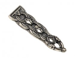 Erhältlich ist das Wikinger-Riemenende im Borrestil in messing- oder silberfarben, gefertig aus Zamakguss.