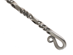 Geschmiedetes Besteckgabel im Stil des Mittelalters mit tordiertem Griff und elegant eingerolltem Ende für Larp und Mittelalter-Reenactment. 18,5 x 2 cm.