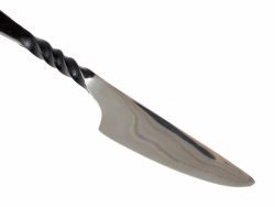 Das aus rostfreiem Edelstahl geschmiedete Mittelalterbesteck-Messer hat einen kunstfertig tordierten Griff und ist ein perfektes Accessoire für die stilgerechte Ausstattung im LARP oder Mittelalter-Reenactment.
