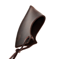 Der Klingenschutz für das Wikinger-Beil ist aus solidem Rindsleder in einem schönen Braunton gearbeitet und wird mit einem Lederband am Beil-Stiel befestigt.