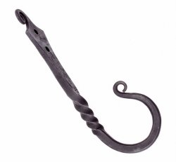 Der Haken ist mit seiner schwarzen Zunderschicht belassen, die das Eisen vor Witterungseinflüssen schützt..