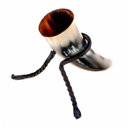 Dieser Trinkhornständer in Omega-Form ist von Hand geschmiedet und kann überallhin mitgenommen werden, denn dieser geniale Trinkhornständer wird ganz einfach hinter den Gürtel gesteckt.