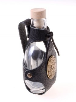 Diese geniale Mittelalter-Feldflasche aus Glas ist mit einer praktischen und formschönen Halterung für den Gürtel versehen.