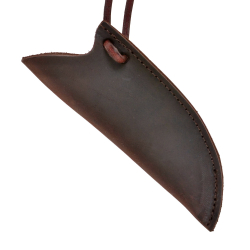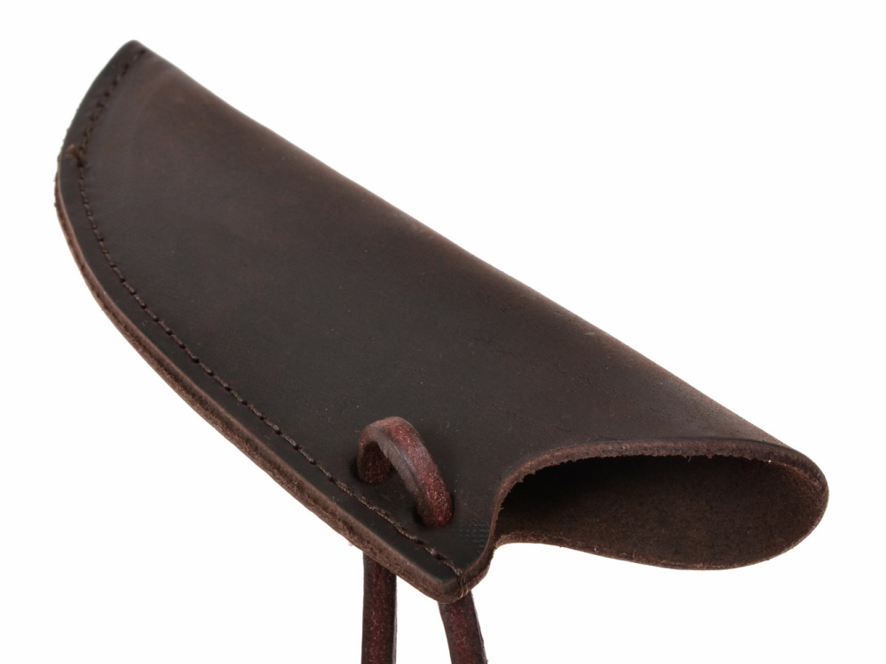 Gefertigt wird die Lederscheide aus pflanzlich gegerbtem und braun gefärbtem Rindsleder.