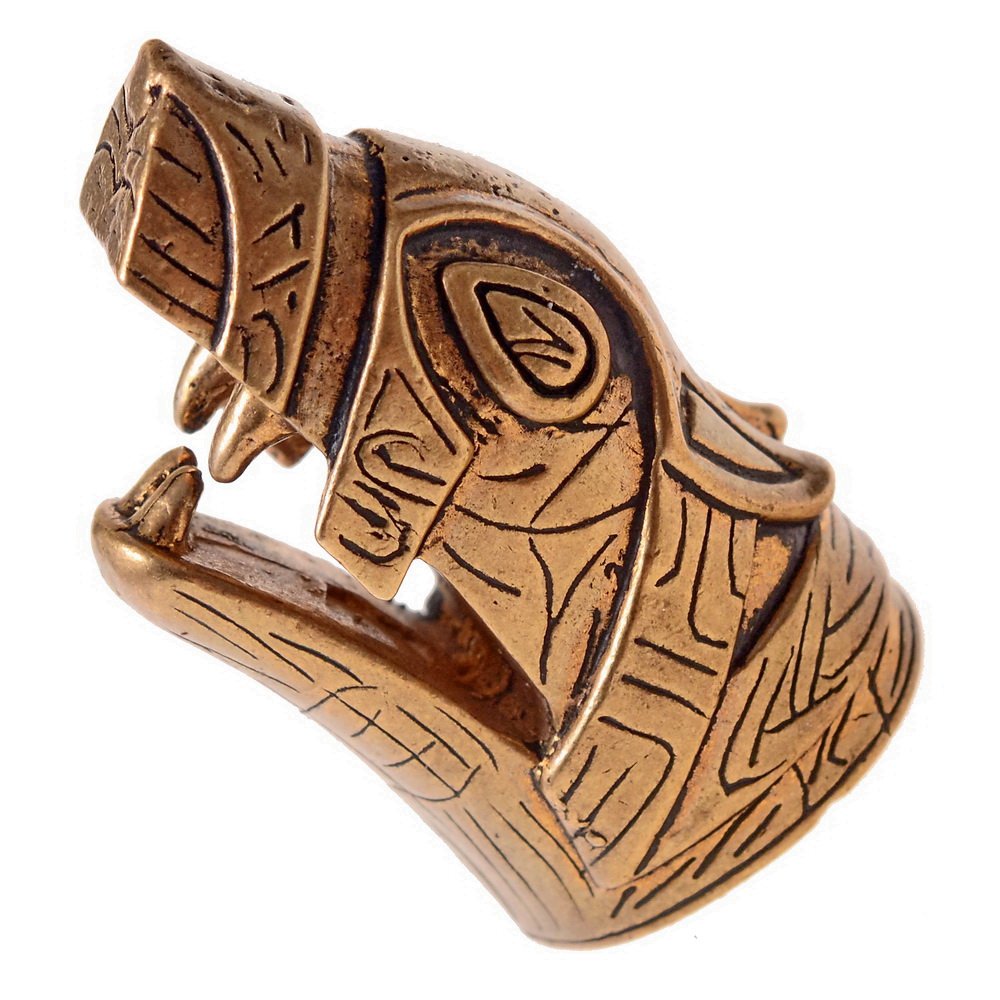 Der Drachenkopf-Pommel wird aus hochwertigem Bronzeguss gefertigt und hat die Maße 5 x 2,5 cm.