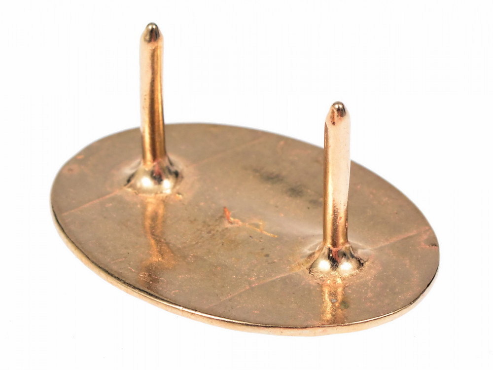 Ovaler Griffabschluss mit keltischem Spiralmotiv aus Bronze, versilbert oder 925 Silber in ovaler Form als Ende für einen Messergriff. 2,7 x 2 cm.