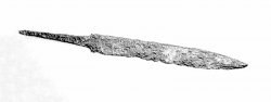 Nachbildung einer historischen Klinge aus echtem Damaststahl für ein frühmittelalterliches Sax - perfekt, um sich mit ein wenig Geschick ein eigenes Damast-Sax bauen.