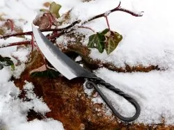 Hier könnt ihr ein handgeschmiedetes Messer aus der germanischen Eisenzeit nach historischen Vorbildern kaufen.