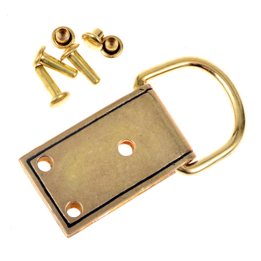 Die Nietplatte misst 3,5 x 2 cm. Der D-Ring 2,5 x 2 cm.