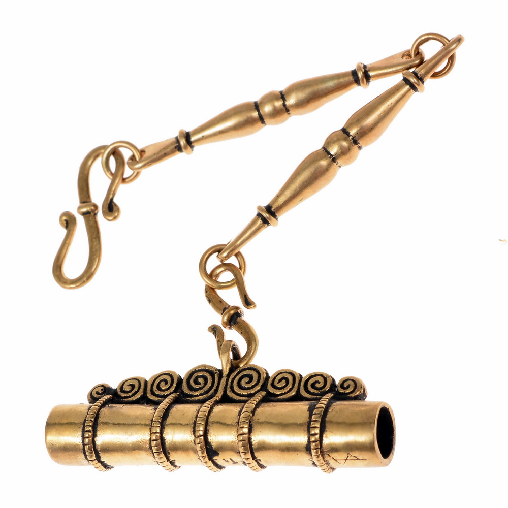 Die Nadeldose an dieser Wikinger-Fibelkette ist eine Replik aus der Wikinger-Stadt Birka und datiert in das 10. Jh.