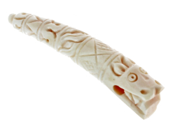 Der Stopfen aus Knochen wurde nach einem historischen Vorbild aus der Wikingerzeit von Hand gefertigt und ist mit einem geschnitzten Drachenkopf verziert. Das Original befindet sich heute im British Museum in London.