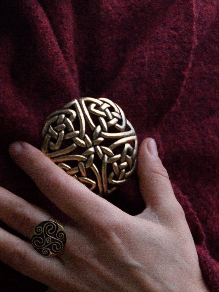 Große Plaid-Brosche mit keltischem Knotenmotiv.