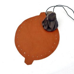 Lederbeutel-Rohling M:Beutel-Durchmesser 20 cm = ca. 7 x 6 cm.
