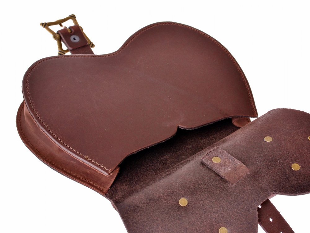 Neben den sieben über den Taschendeckel verteilten Zierbeschlägen dient die detailgetreue Replik einer mittelalterlichen Schnalle zusätzlich als Blickfang auf der Vorderseite der Nierentasche und sorgt zudem für einen sicheren Verschluss.