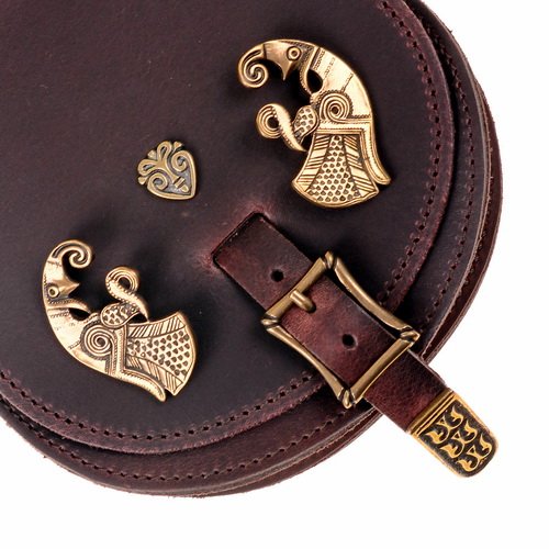 Diese mittelalterliche Gürteltasche wurde von mittelalterlichen Vorbildern ungarischer Tarsoly-Taschen inspiriert, die während der Wikingerzeit bei den Magyaren und den östlichen Wikingern verbreitet waren.