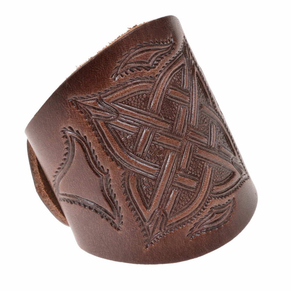 Dieses schöne Leder-Armband mit keltischer Prägung im Stil des irischen Mittelalters sorgt für einen guten Halt am Handgelenk und sieht dazu noch hervorragend aus.