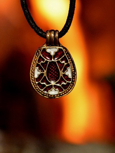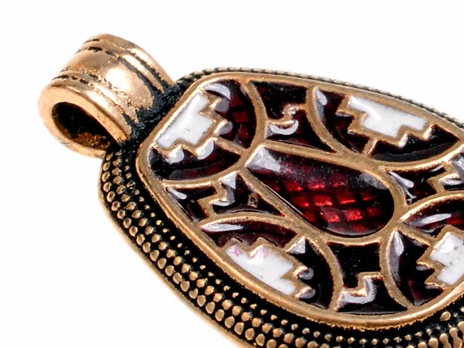 Diese bezaubernde Replik von einem merowingerzeitlichen Cloisonné-Anhänger ist nach einem historischen Amulett aus dem angelsächsischen England gearbeitet.