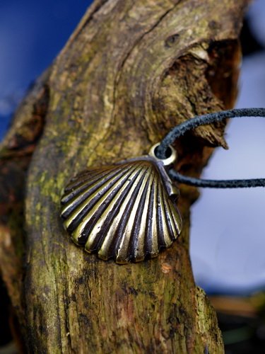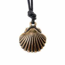 Ein schwarzes Baumwollband in 1 m Länge liegt dem Jakobsmuschel-Anhänger bei.