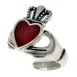 Dieser edle Fingerring wurde nach einem historischen Claddagh-Ring gefertigt und zeigt ein von Händen gehaltenes gekröntes Herz.