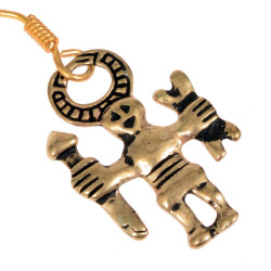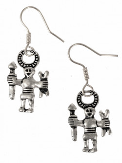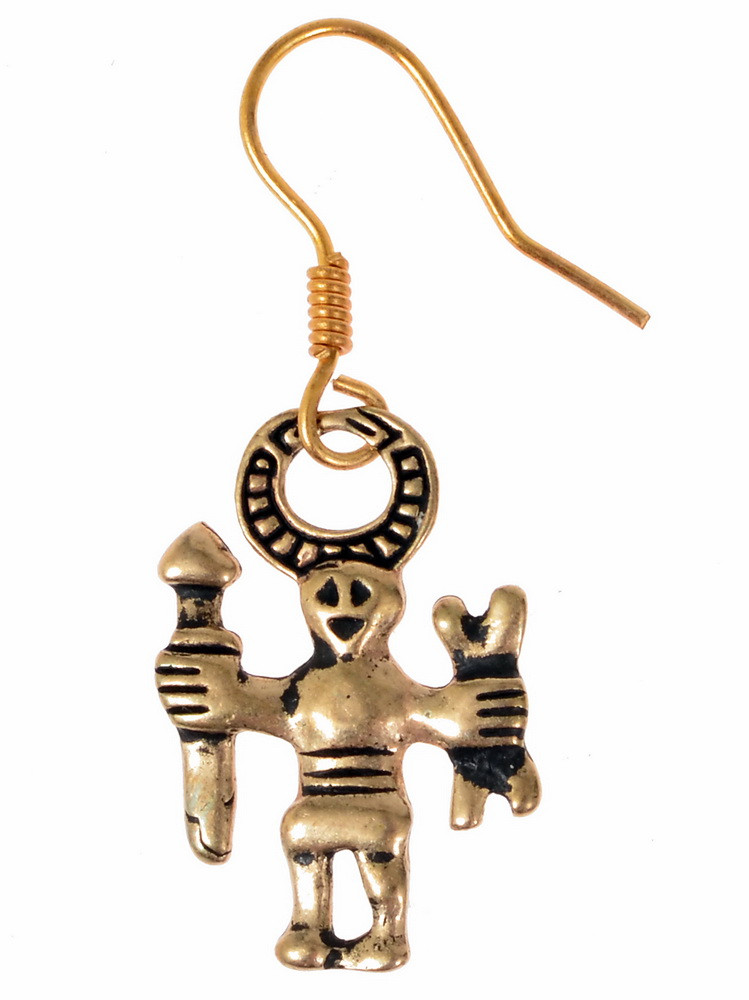 Die Wikinger-Ohrringe sind einem Odin-Amulett nachgebildet, das auch als Waffentänzer bezeichnet wird, und in die Vendelzeit oder frühe Wikingerzeit datiert. Link zum historischen Fund...