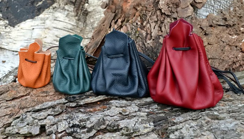 Here you can buy a medieval leather bag in large size made from a single round piece of cowhide 1 mm thick.