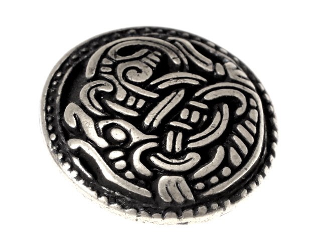 The Viking Age decorative rivet gripping animal is available in brass or silver-coloured cast zamak.