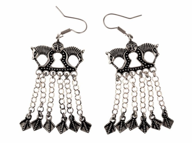 This pair of horse shaped ear rings were made according to a finding of a rattle pendant from Staraja Ladoga / Russia.