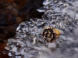 The rose has a diameter of 2.5 cm, is adjustable and can be adapted to any ring size.