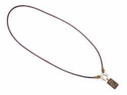The plain, round leather cord is available in elegant matte black color with silver plated end caps or in a nice antique brown with bronze heads.