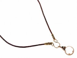 The braided leather necklace is available in elegant matte black colour with silver plated parts or in a nice antique brown with bronze parts.